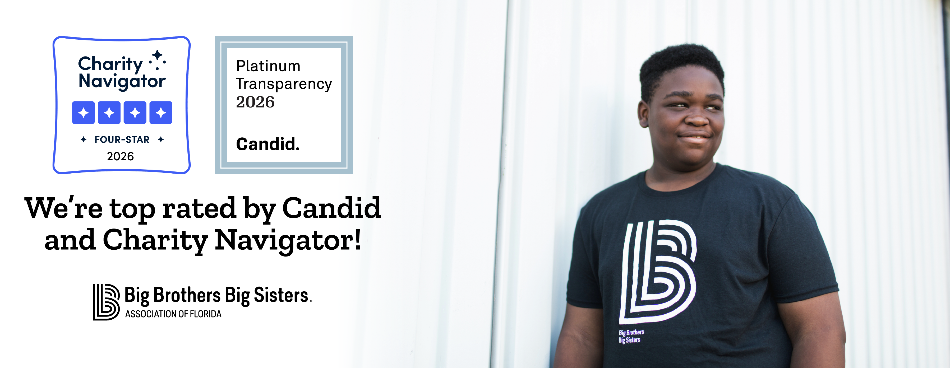 Big Brothers Big Sisters Association of Florida earns top nonprofit ratings from Charity Navigator and Candid for financial health, transparency, and impact.